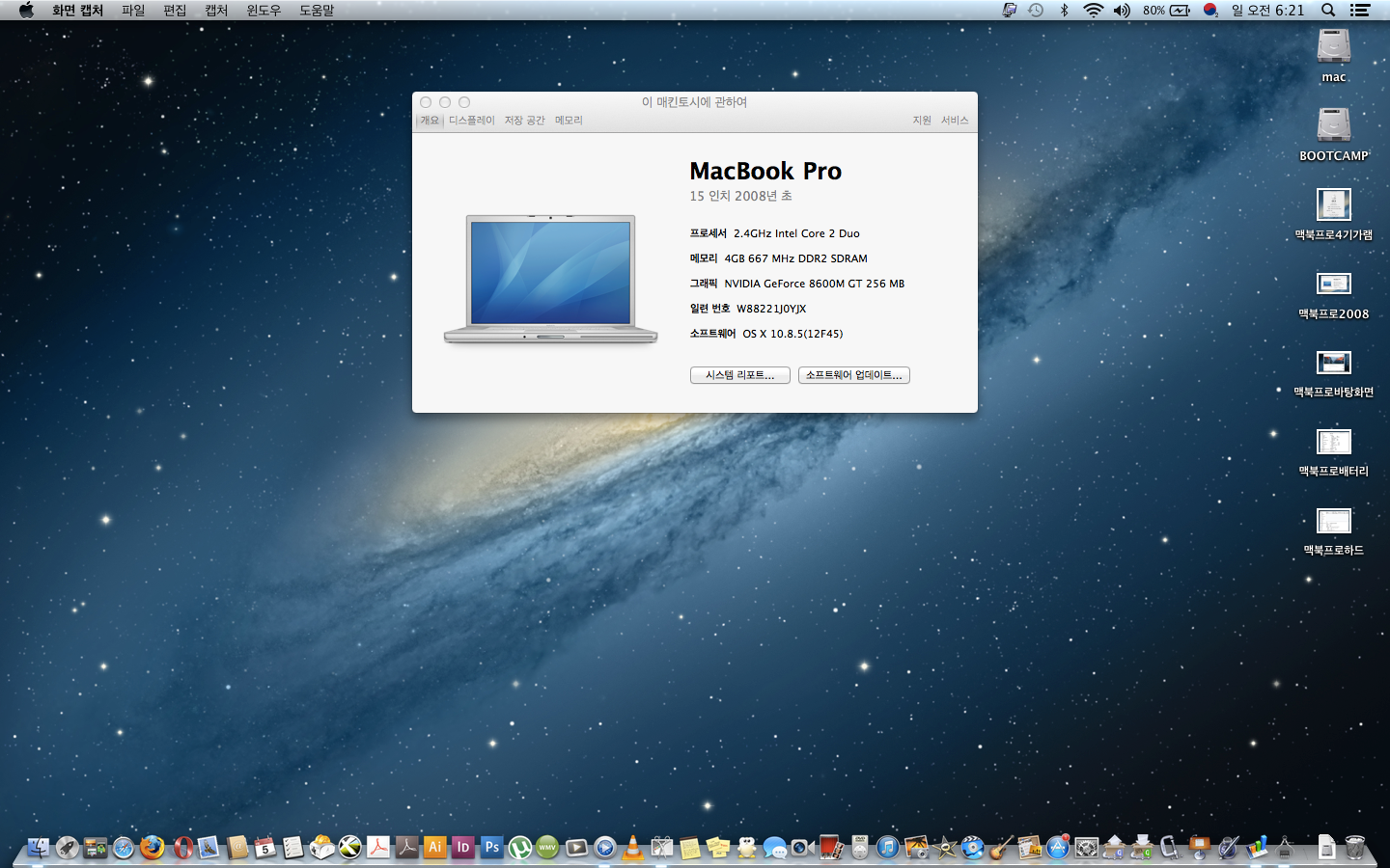 하드도 500기가로 교체했고 부트캠프로 윈도우즈7까지 설치해서